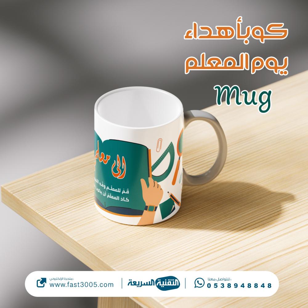 كوب سيراميك بتصميم يوم المعلم ٢٠٢٥