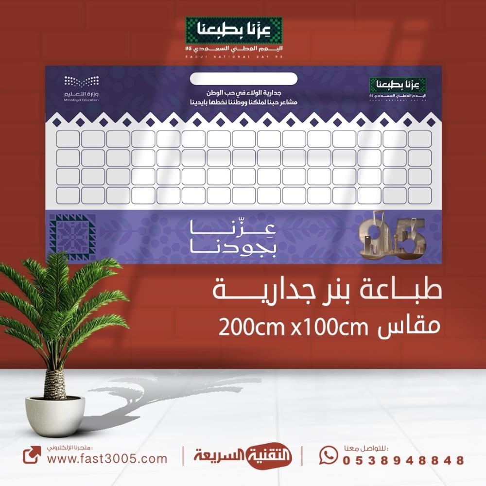 لوحة جدارية بنر اليوم الوطني السعودي 95 الذي يمكن طباعته والذي يتميز بالعديد من المزايا: