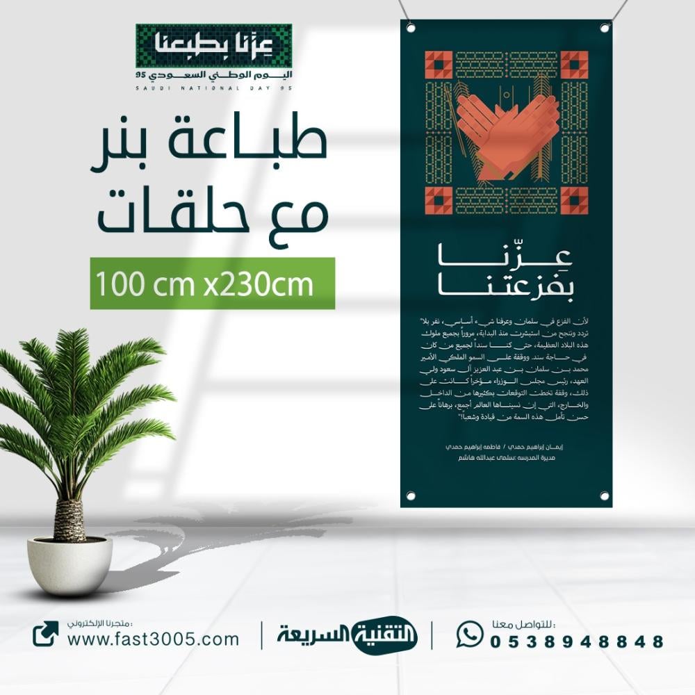 طباعه بنرات مع حلقات بهوية اليوم الوطني السعودي ٩٥ عزنا بطبعنا