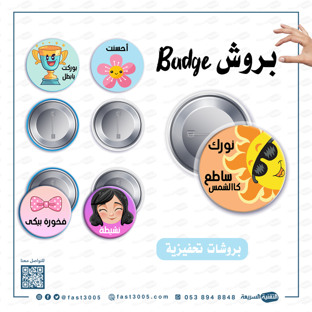 بروشات (باجات) بتصاميم منوعةمميزاتمصنوع من البلاستيك بمشبك من الخلف .تصاميم متنوعه وجميله طباعة دقة عاليه مقاس 5.8cm