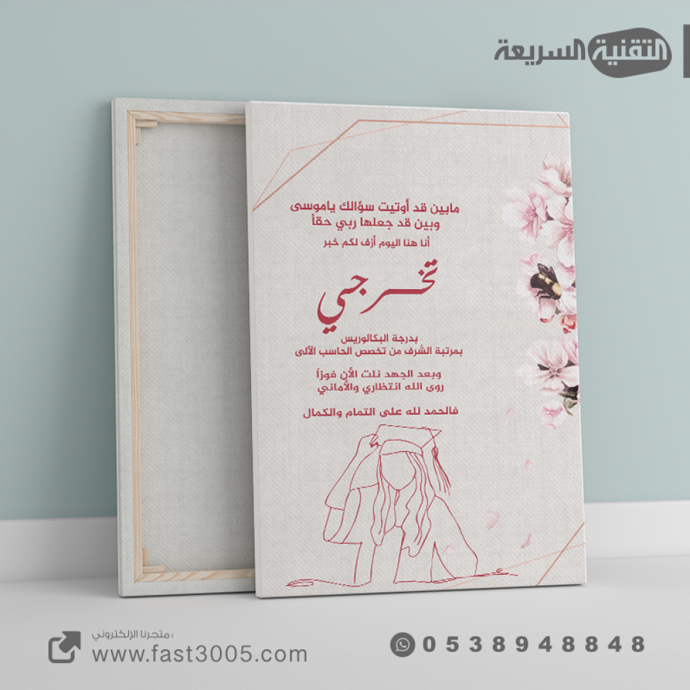لوحات كانفس التخرج هي هدايا تذكارية تدوم مع الزمن وتعكس الفخر بالإنجازات الأكاديمية. إذا كنت ترغب في معرفة المزيد أو الطلب، لا تتردد في السؤال!