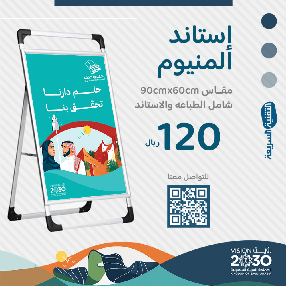 منتجنا هو استاند المنيوم اليوم الوطني السعودي 94 الذي يمكن طباعته والذي يتميز بالعديد من المزايا: