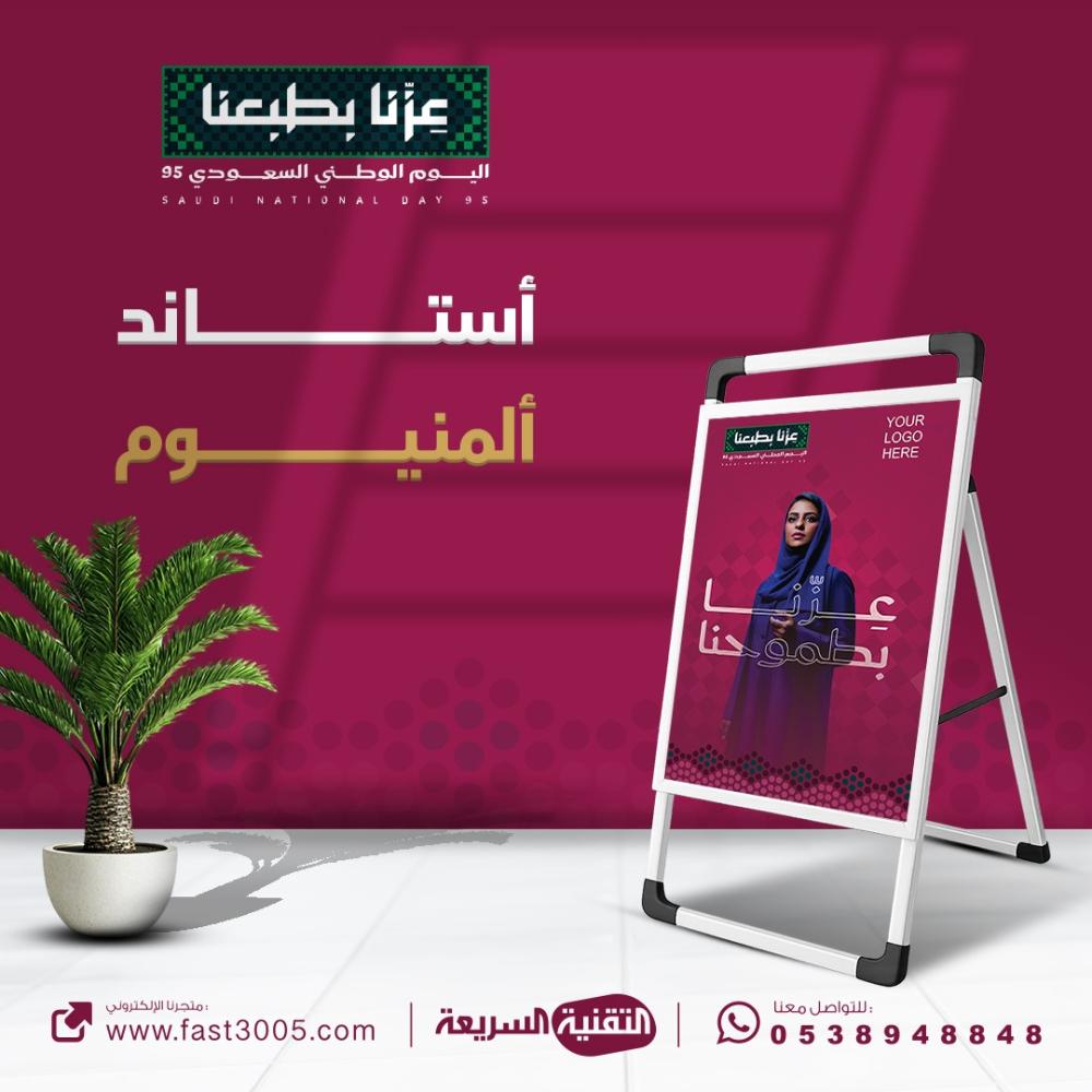استاند بنر مصنوع من المينيوم بهوية وتصاميم اليوم الوطني السعودي ٩٥ - عزنا بطبعنا
