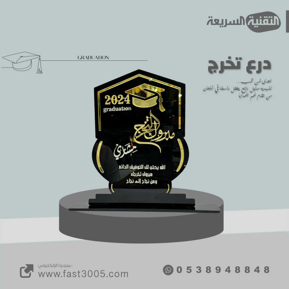 درع التخرج من الأكريليك هو الطريقة المثلى للاحتفاظ بذكريات يوم التخرج بشكل يدوم مع الزمن. 🌟