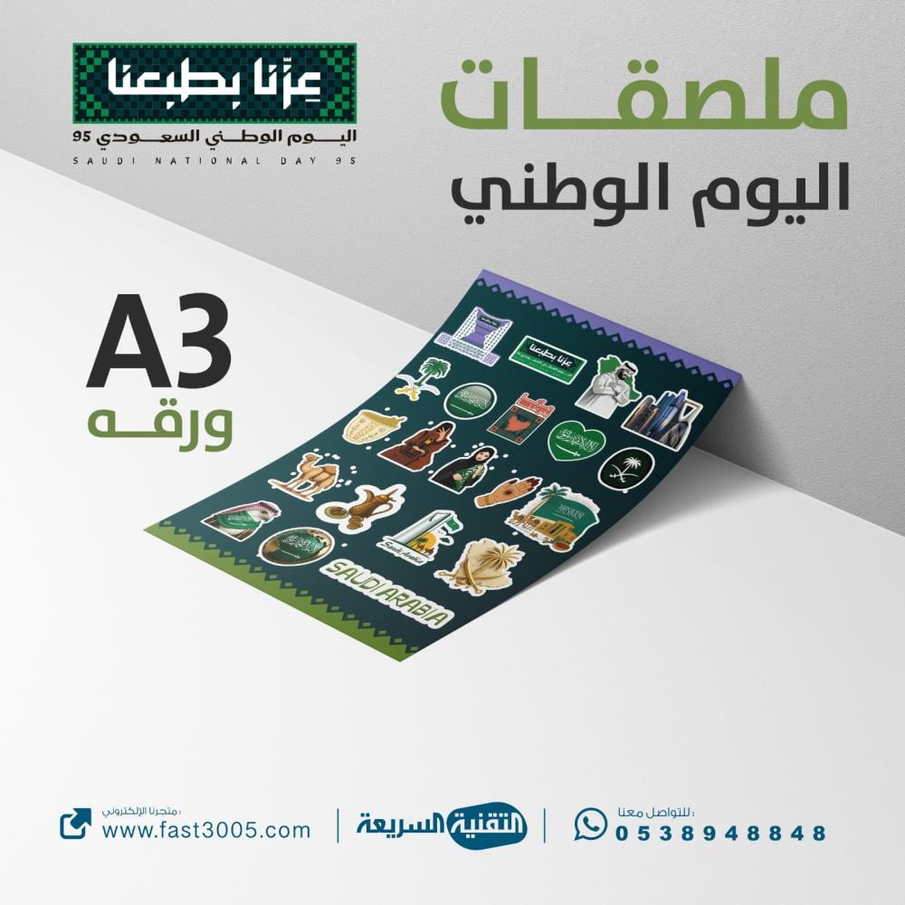 - المنتج: ملصقات (استيكرات) لاصقة بهوية اليوم الوطني السعودي 95.