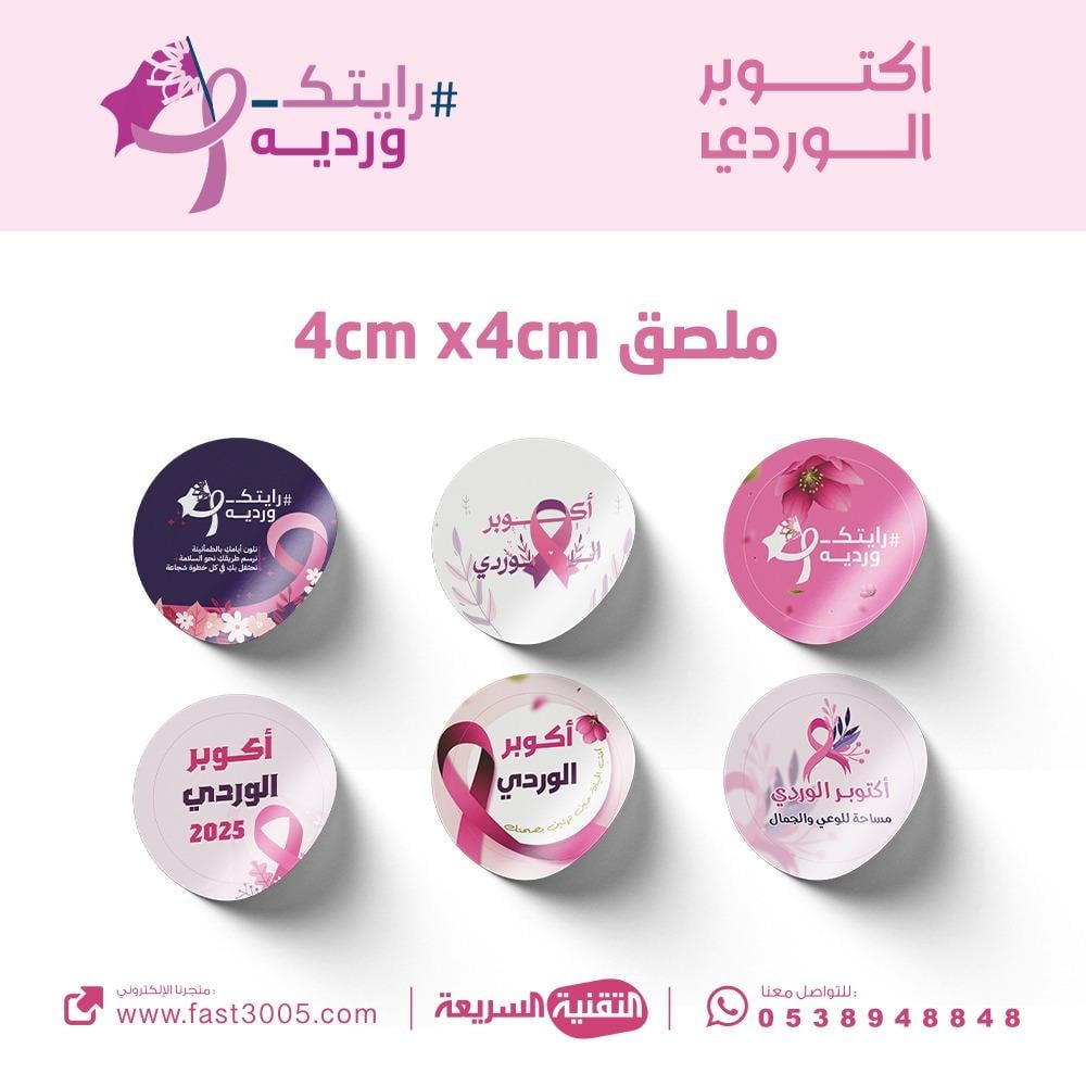 طباعة لاصق ( استيكر ) مقاس 4cm اكتوبر الوردي رايتك وردية ٢٠٢٥ ملصقات سرطان الثدي