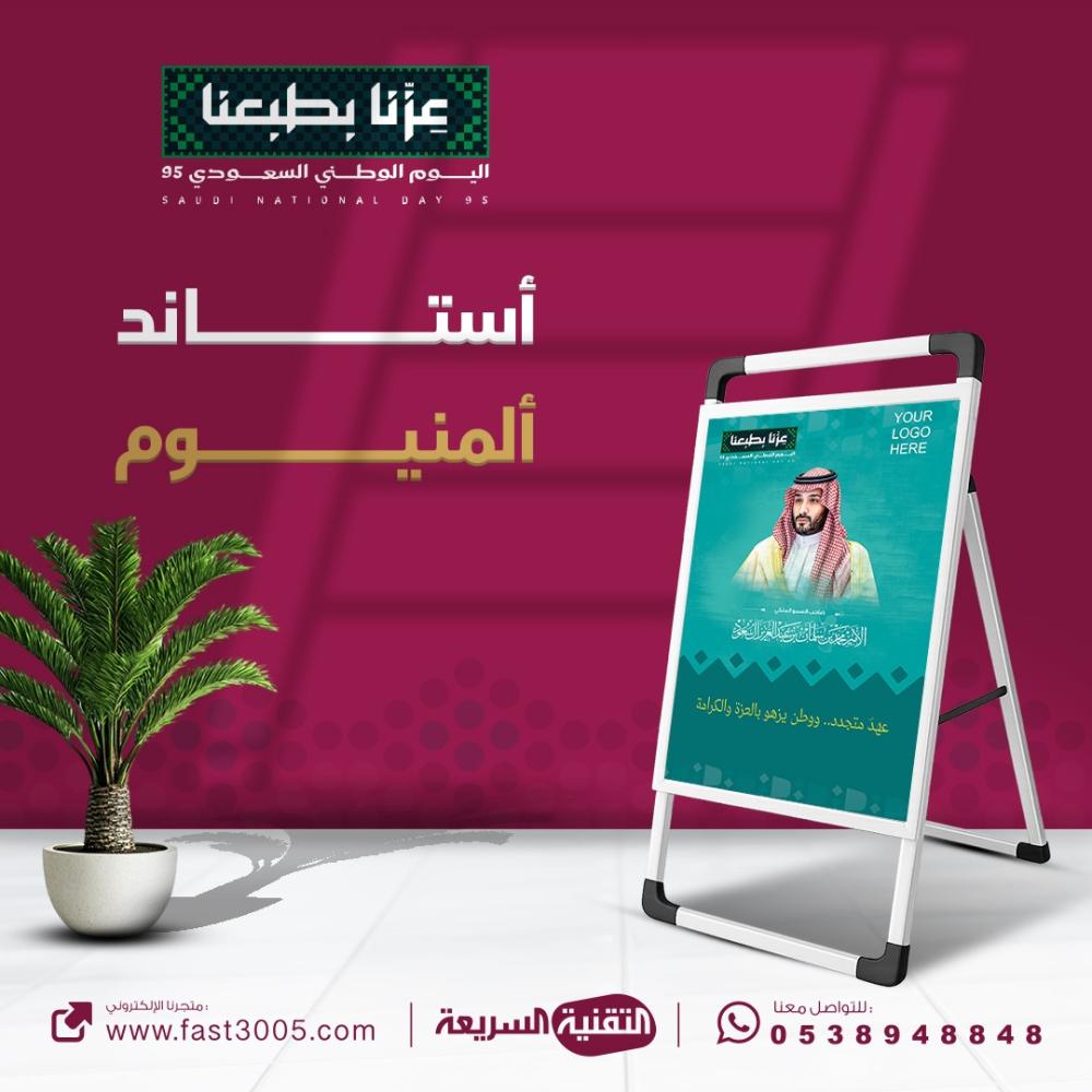 استاند بنرات - مصنوع من المينيوم - بهوية وتصاميم اليوم الوطني السعودي ٩٥ - عزنا بطبعنا